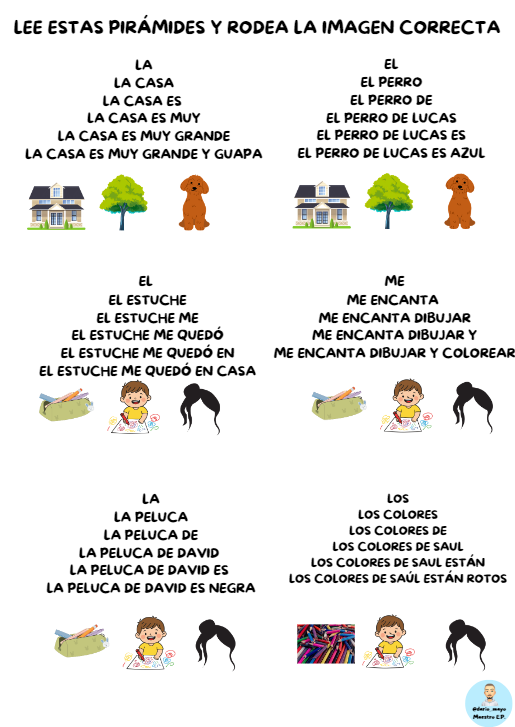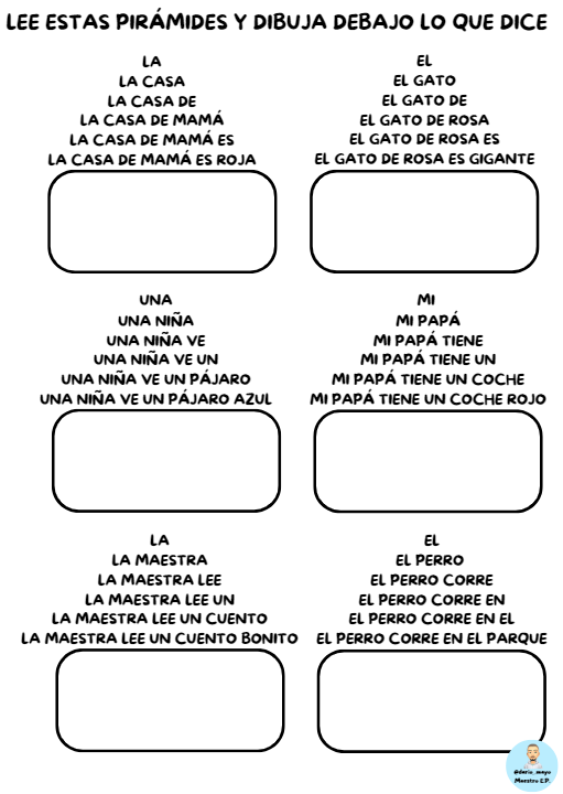 Las lecturas en pirámide son un recurso sencillo que ayuda a mejorar la velocidad lectora, ya que permiten repetir las palabras aumentando progresivamente la longitud de la frase.